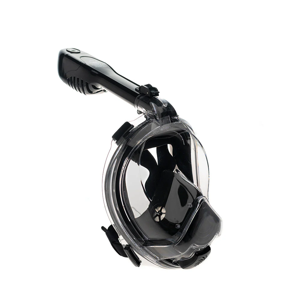 Our newest addition to the Full Face Snorkel Mask Packages. With an automatic air system powered by an electric ventilator that does the airflow circulation for you. Available in 2 sizes S/M and L/XL Leakproof, Flat Lens, and 30% more viewing area.