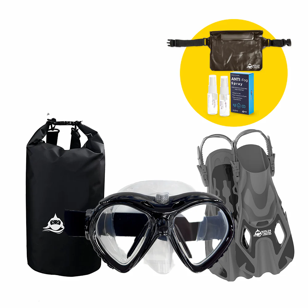 Complete Snorkelling Package with CLEARVIEW, the 1st Snorkel Mask, featuring a revolutionary defog function with Built-In Wipers.